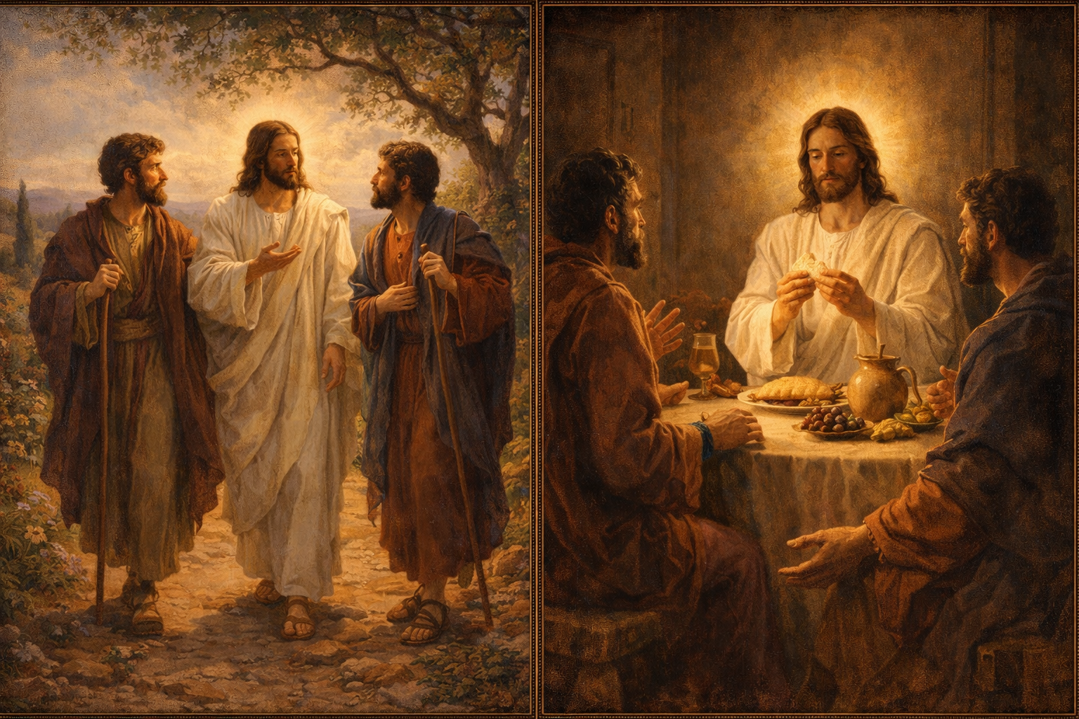 예수님께서는 그들의 잘못된 이해를 바로잡아 주십니다. 십자가 죽음은 실패가 아니라, 예언자들이 예고한 구원 계획의 필연적인 과정이자 영광으로 나아가는 유일한 길임을 가르쳐주십니다. 그리고 빵을 떼어 나누어 주실 때, 비로소 영적인 눈이 완전히 열려 부활하신 주님을 알아볼 수 있게 됩니다. 그들은 곧바로 일어나 예루살렘으로 돌아갑니다. 그 시간이 분명 날이 이미 저물어 위험한 밤길인데도 말이지요. 절망의 목적지인 엠마오를 버리고, 고난의 장소이자 사명의 자리인 예루살렘으로 돌아가는 것입니다. 두려움이 기쁨과 용기로 완전히 역전되었습니다.